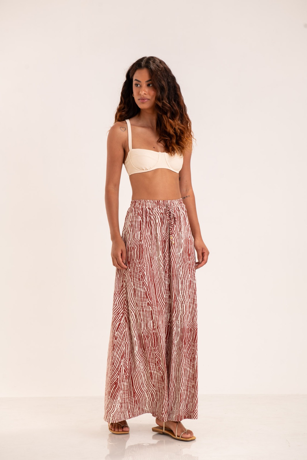 Confeccionado em microfibra de poliamida super opaca com estampa digital exclusiva Raízes, este saía longa feminino combina leveza, conforto e caimento impecável. Sua elasticidade equilibrada valoriza a silhueta, garantindo liberdade de movimento e um visual atemporal. O modelo longo e amplo proporciona liberdade de movimento, enquanto a cintura alta com cós de elástico encapado em tecido franzido valoriza a silhueta. Além disso, o tecido possui proteção UV 50+, oferecendo segurança e conforto para dias de sol. Versátil e sofisticado, é ideal para looks de pós-praia, passeios ao ar livre ou ocasiões casuais, podendo ser combinado com sandálias, acessórios e chapéus que valorizam a estampa exclusiva